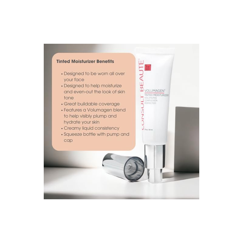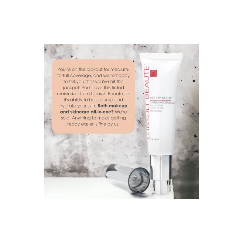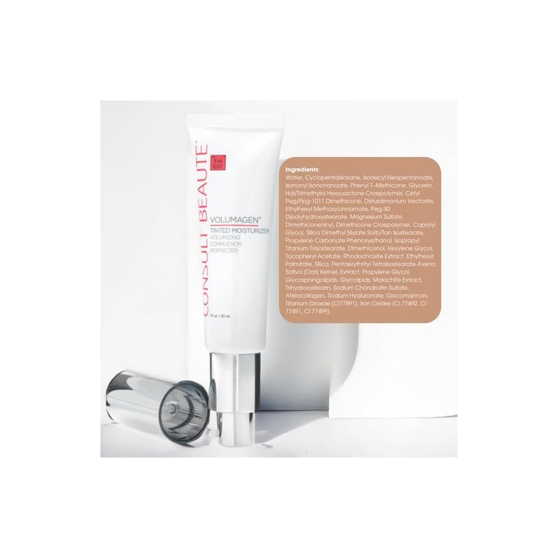 The Consult Beaute Volumagen Tinted Moisturizer is designed to with a creamy consistency to help moisturize and even-out the appearance of your skin tone Great buildable coverage that features a Volumagen blend to help visibly plump and hydrate your skin on the face and neck.