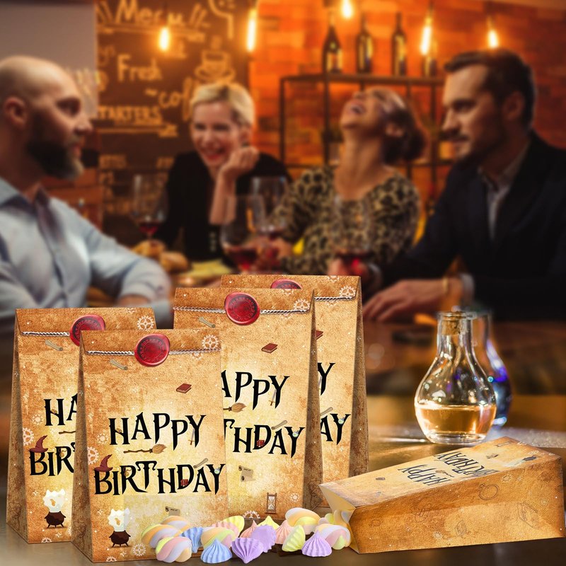 - Quality Material: these wizard Kraft paper party bags are made in quality paper and the tone is Kraft paper texture; The bottom of the magical party favor bags are padded, strong enough to hold small party things, candies, toys, cookies, goodie and other gifts; You won't miss them if you want wizard birthday party supplies