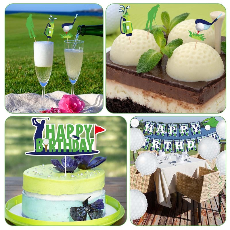 Containlol 32 Pieces Golf Birthday Party Supplies Decor Kits Golf Theme Happy Birthday Banner Golf Themed Cake Toppers Happy Birthday Cake Inserts Golf Aluminum Foil Balloons for Golf Themed Party