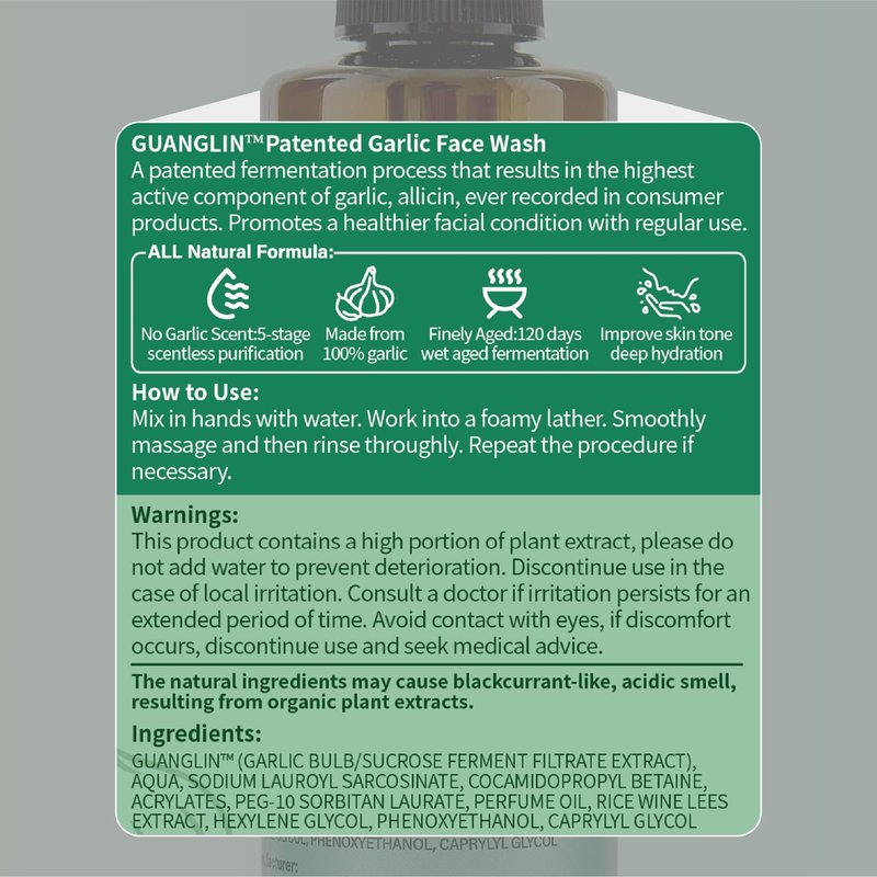 - GENTLE CLEANSING: Suitable for sensitive skin, this face wash with garlic extract offers multiple benefits by effectively removing dirt, makeup residues, and improving facial oiliness, maintaining the balance of facial oil and water.