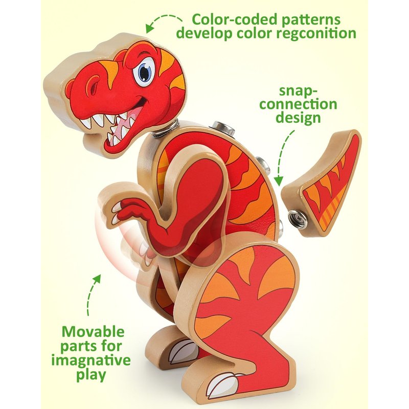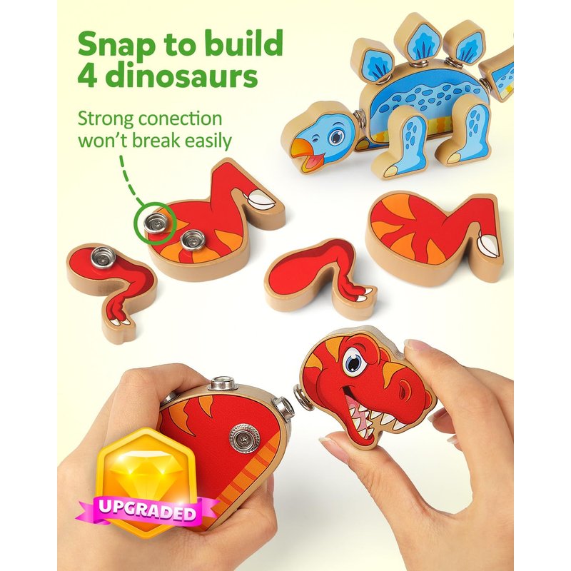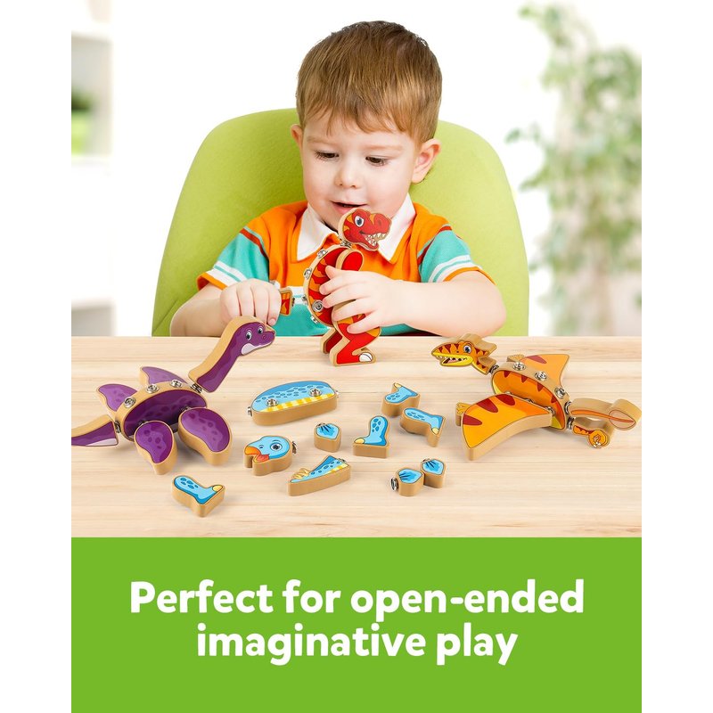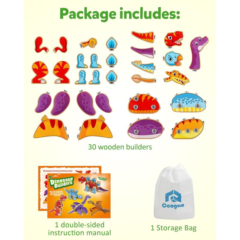 - Build Four Prehistoric Creatures: You will receive 30pcs wooden open-ended dinosaur builders. Kids can use these color-coded snap-together heads, legs, tails and more to create 4 different dinosaurs, also kids can use their imagination to mix and match these builders to create some cool creatures!