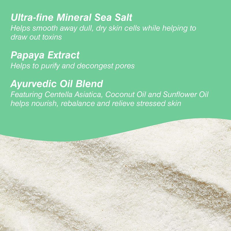 - MINERAL SEA SALT: Helps smooth away dull, dry skin cells & leaves skin refined