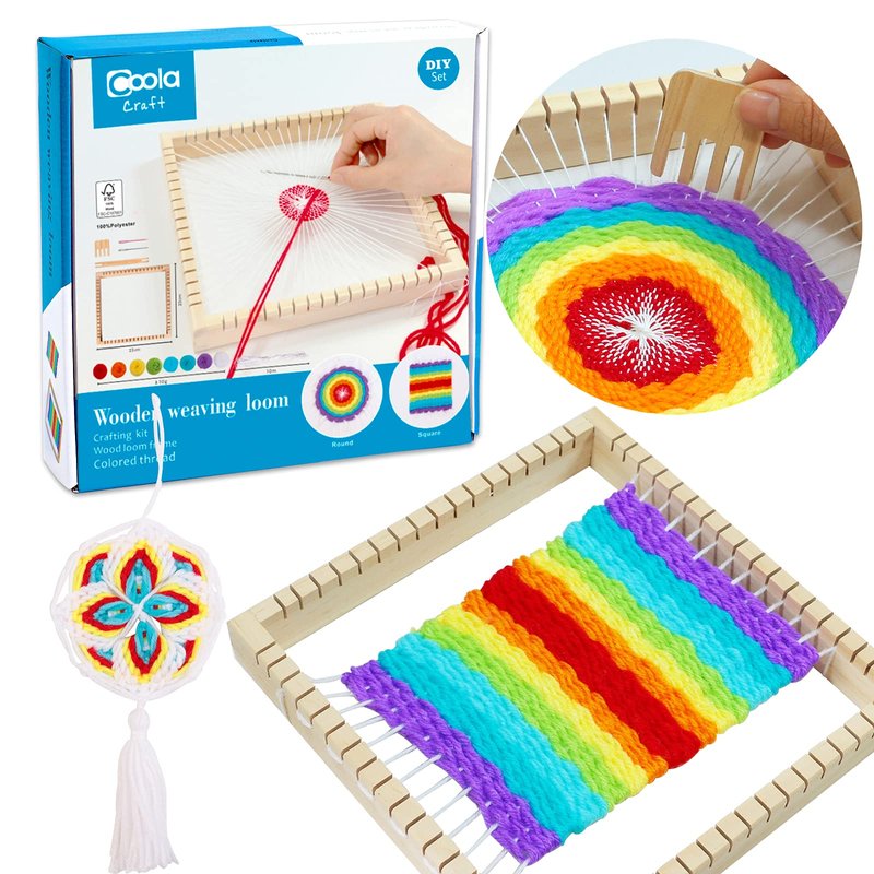 Coola Wooden Multi - Weaving Loom Kit for Kids Beginners Art and Craft Mini Loom(9 x 9in) Handcraft Including Crafting Kit,Wood Loom Frame,Colored Thread and Instructions