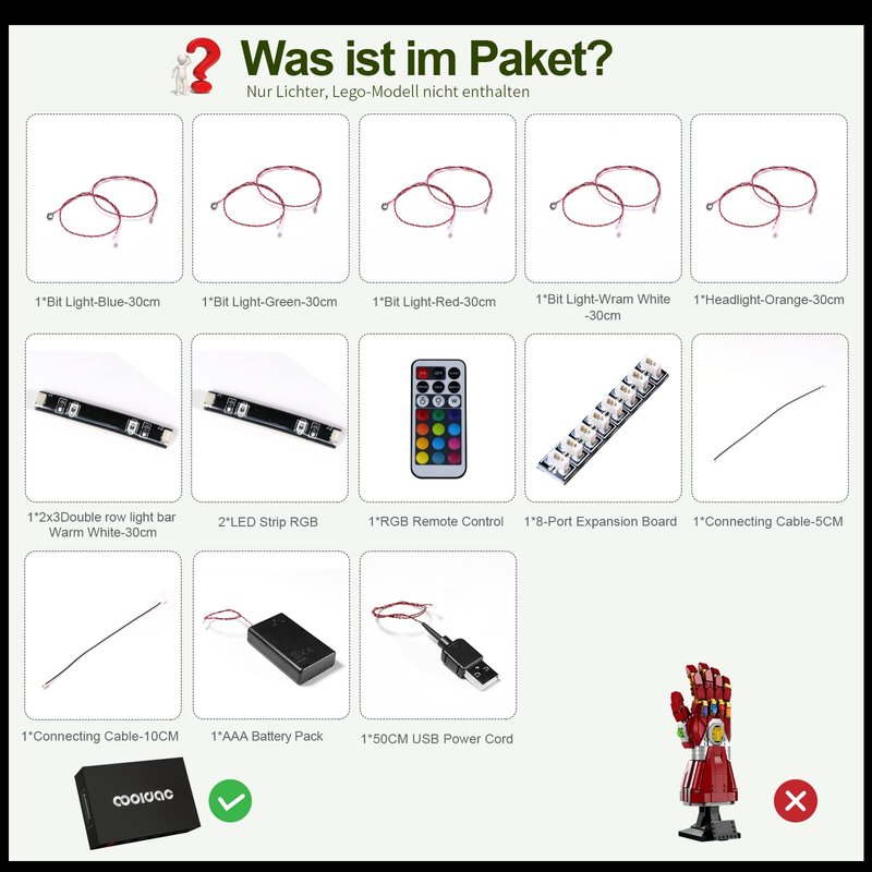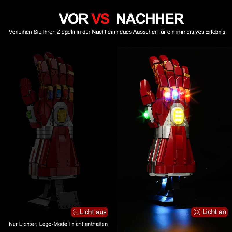 - 🌠Our LED light kit is specially compatible with Lego Marvel Nano Gauntlet 76223 Building Set, it can lighting up your Building Block Model in dark, Make it look more attractive.