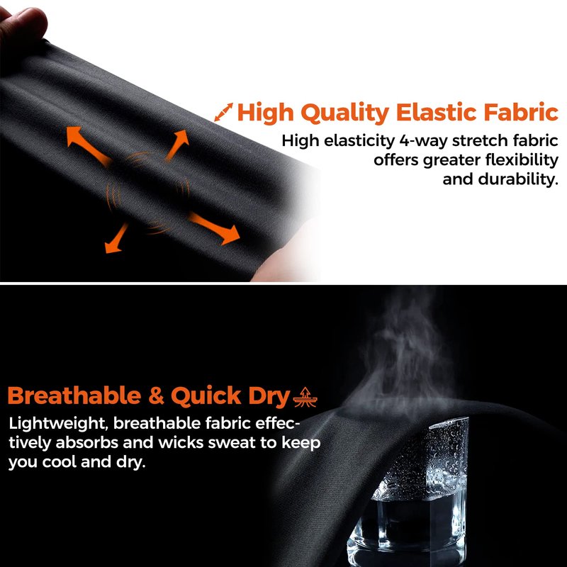 - Compression Fit: The extra-long leg sleeves provide a power compression, stabilize the muscles and provide additional protection against injuries and scratches. The graded compression structure improves blood flow to the legs and helps accelerate blood flow to the heart.