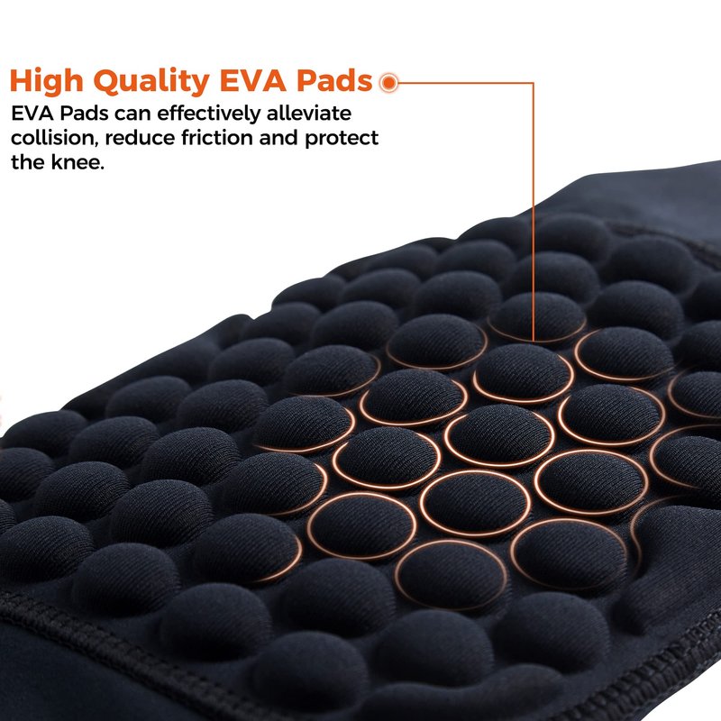 - THICKENED EVA PADDING: The high-density strengthened foam pads are designed for an overall knee protection. Excellent impact-resistance and shock-absorption can reduce the risk of getting injured while your kids are running round chasing the ball or accidentally hitting to the hard court floor.