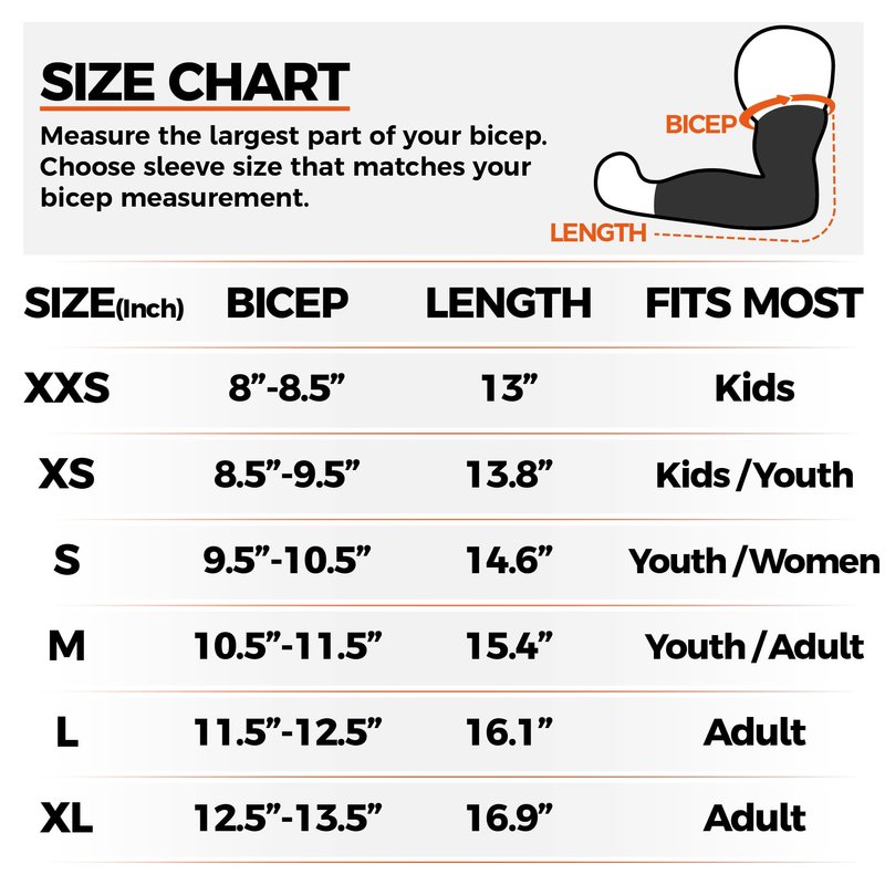 - NON-SLIP DESIGN: sun protection over 98%. Rubber bicep band ensures compression sleeve comfortably stays in place. Our forearm & elbow sleeves are specially designed for youth sports including baseball, basketball, football, volleyball & more.