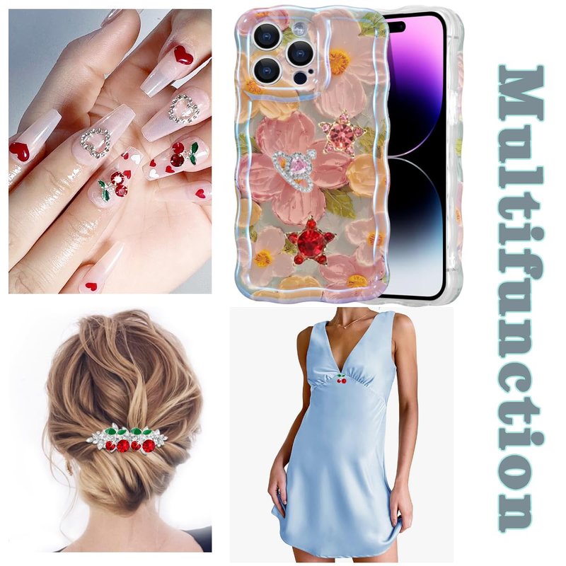 - 🍒 Wide Used: These charming cherry nail charms are not only perfect for acrylic nails, but also for various crafts projects, such as eye makeup, hair accessories, key chains, phone case, necklace, bags and other different kinds of handicrafts, these charms offer endless possibilities.