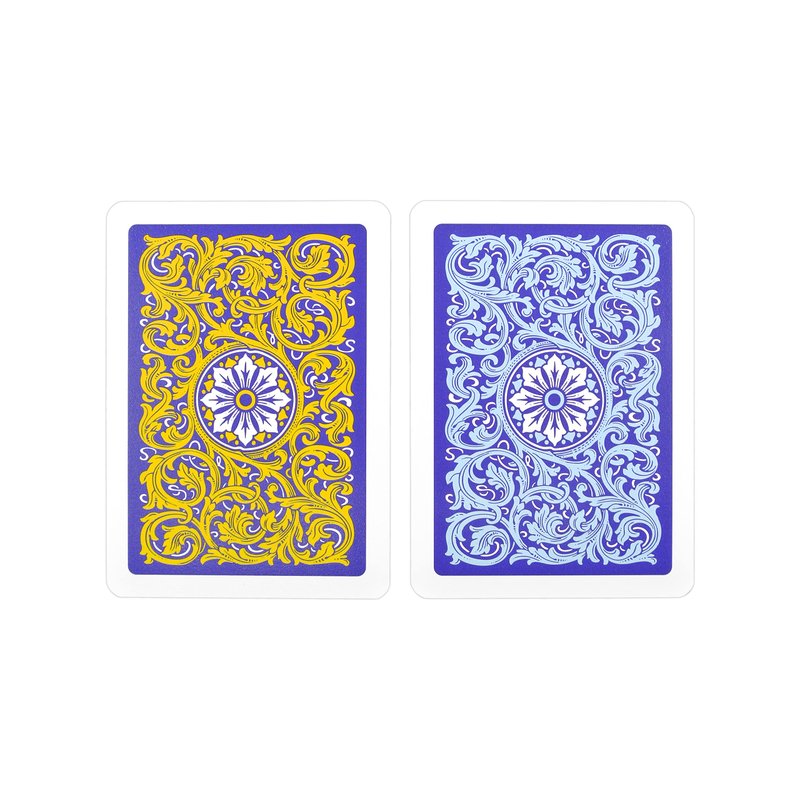 - ♦️ CARD TYPE: This product includes twelve decks of 52 cards, 2 jokers and a guarantee card. The decks are poker sized which measure 3 7/16” by 2 1/2 “. This is considered a “wide” size. The blue and yellow cards are printed over a blue background to make the colors pop!
