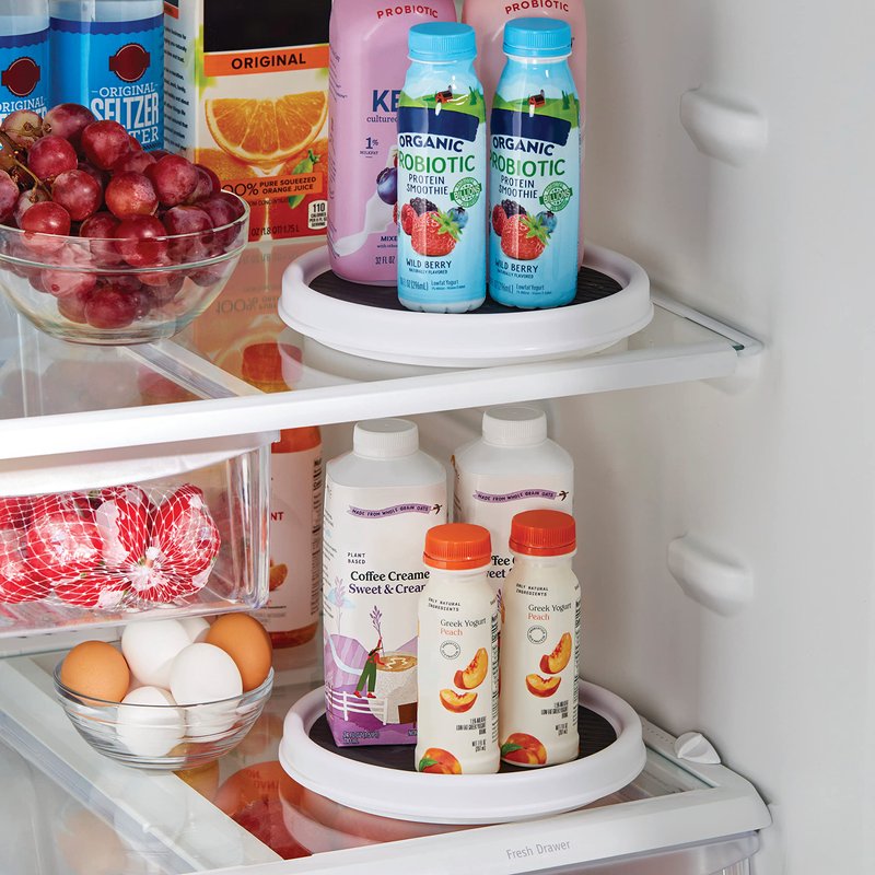 - Outer rim prevents items from falling off, non-skid surface keeps items in place while rotating