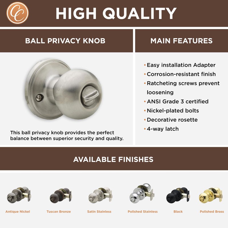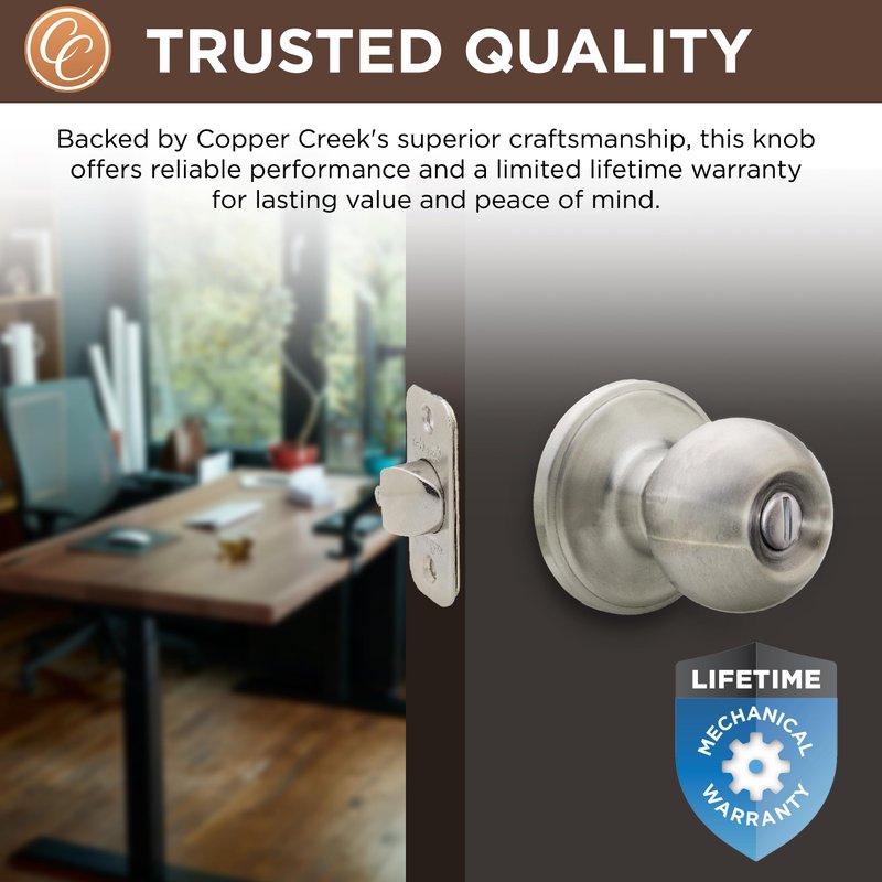 Copper Creek BK2030SS Ball Door Knob, Privacy Function, 1 Pack, Satin Stainless