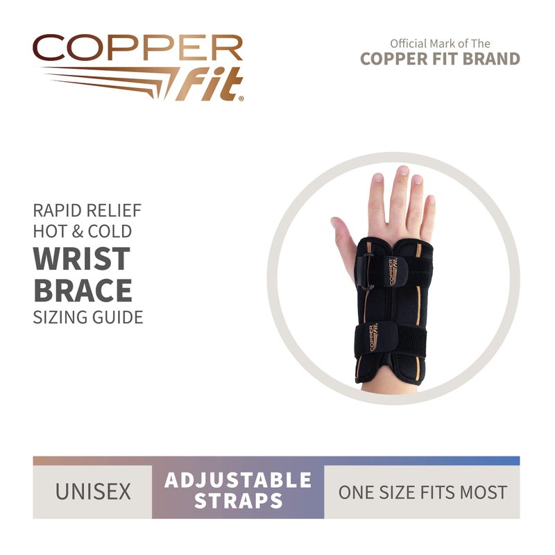 - Copper Fit wrist brace features a gel pack that can be heated or cooled for extra relief from every day pain.