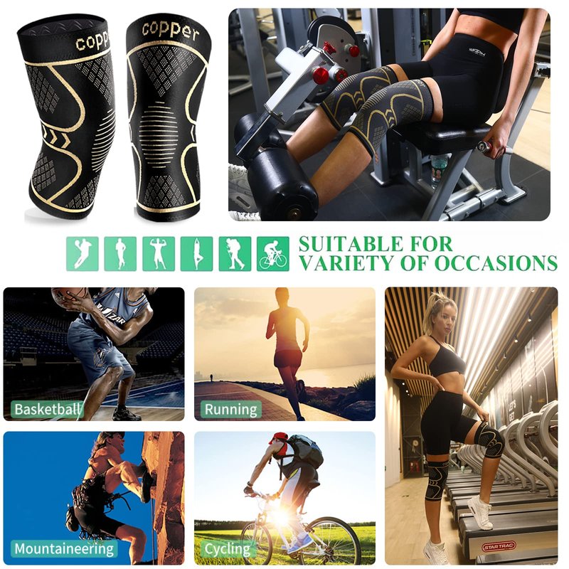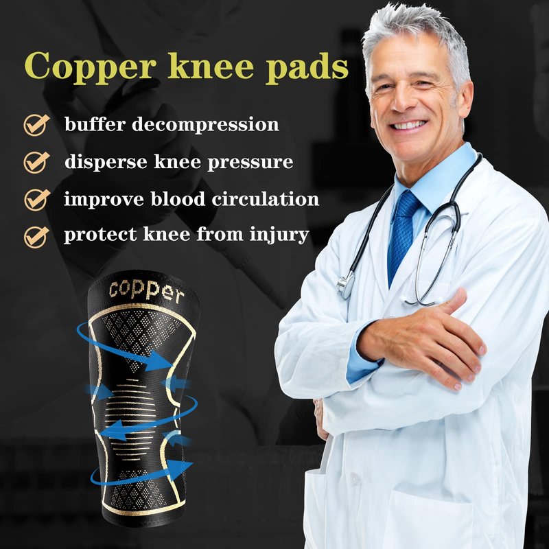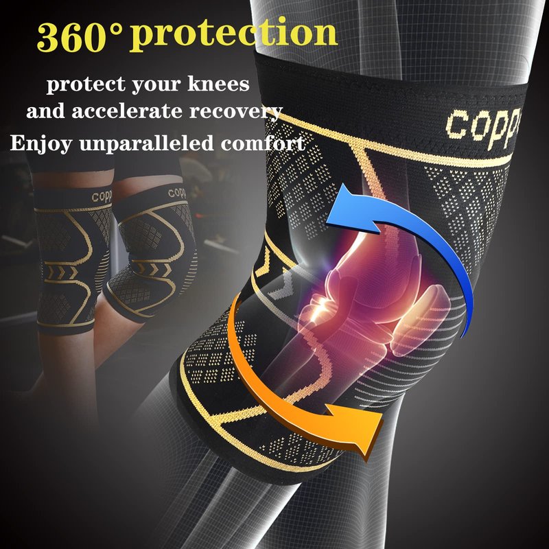 Copper Knee Braces for Knee Pain 2 Pack, Knee Compression Sleeve Support for Men and Women, Medical Grade Knee Pads for Running, Hiking, Working, Arthritis, ACL, Meniscus Tear, Joint Pain Relief