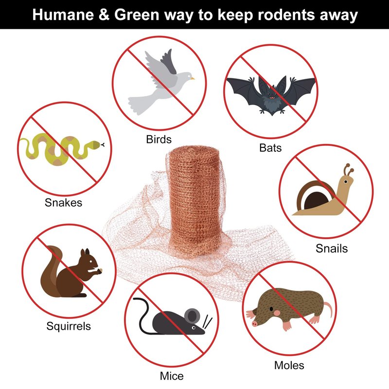 - Green way to block holes: Mouse repellent has no rusting worries or the potential danger of mice trap catching fire easily. Copper mesh rodent control do not require rat bait or mouse bait, so there is no waste.You can reuse the copper steel wool for mice by recycling it after use. And you'll be pleasantly surprised to find that our copper rodent repellent don't leave stains on bricks or wood!