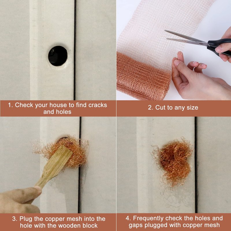 - Effective blocking holes: Holes of any shape and size can be effectively plugged by using our copper wool for rodent control indoor for home. Our copper mesh roll is designed to stuff various open gaps to prevent excess people or animals from entering your space area.