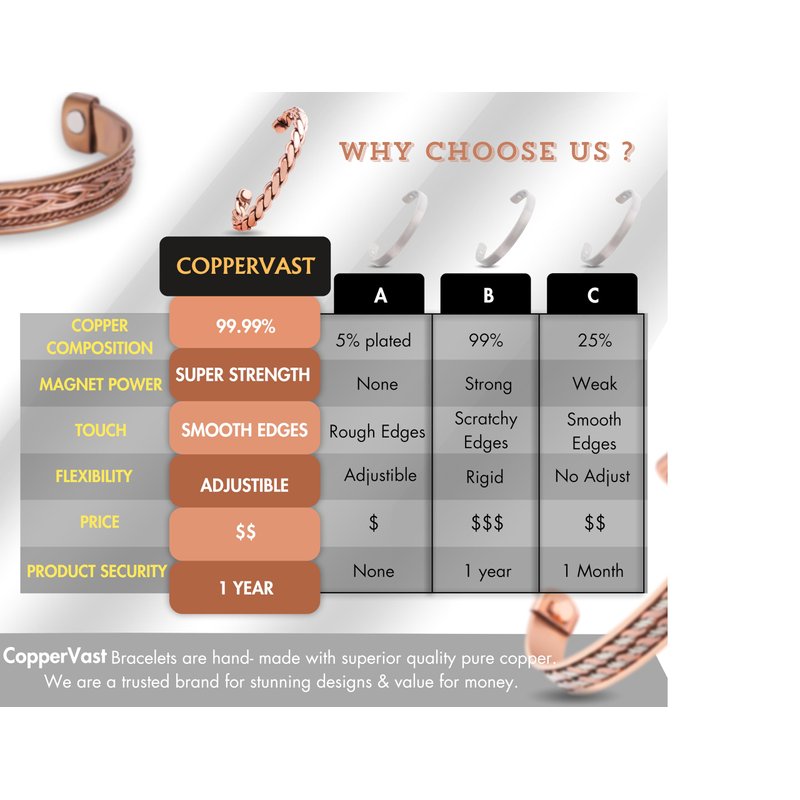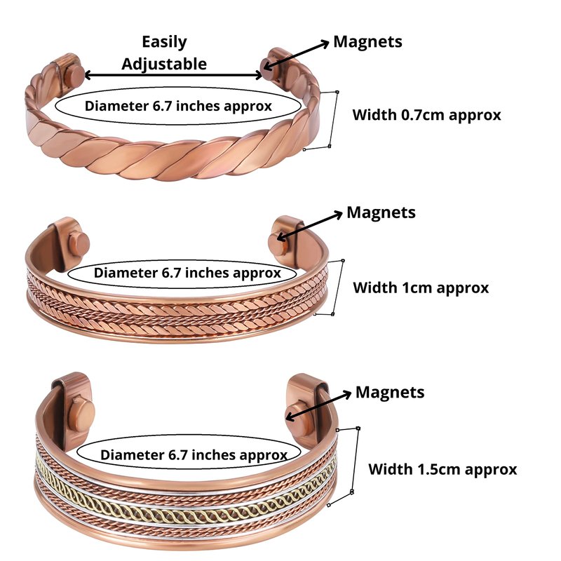 Our set of three Copper Bracelets for Women and Men are uniquely crafted with precision and infused with the timeless allure of copper, designed to enhance your style and wellness.
