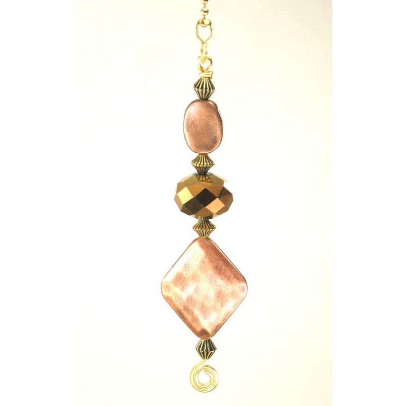 Coppery Diamond and Faceted Lampwork Glass Ceiling Fan / Light Pull