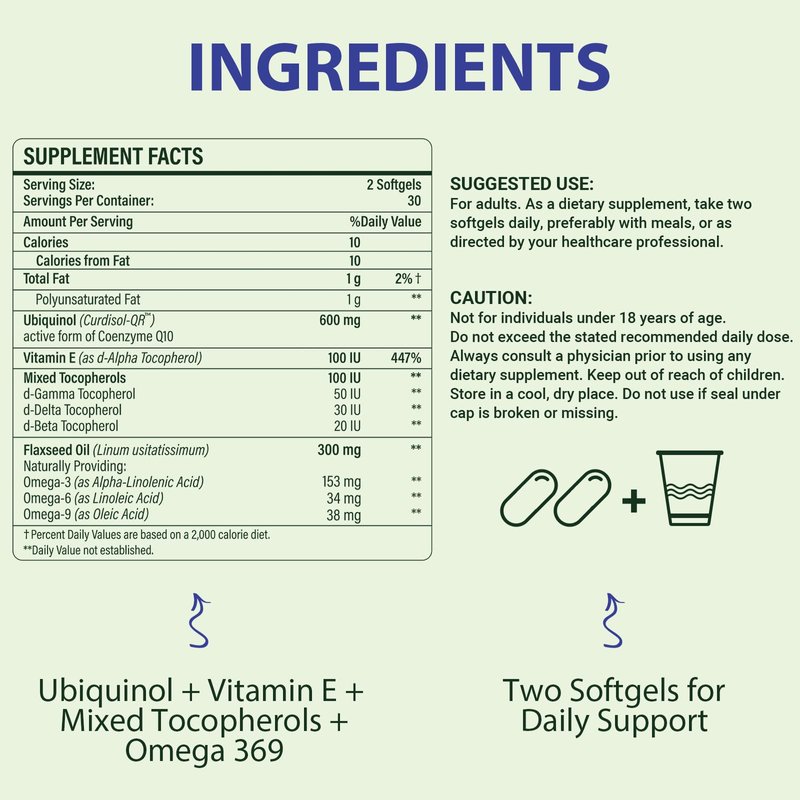 - Absorption Comes First - Curdisol-QR is our patented Ubiquinol and we ensure a good ratio between water-solubility and fat-solubility of it. Therefore, this reduced form of CoQ10 has 3-4 times better absorption rate in the body compared to Ubiquinone. Don’t settle for 100mg, 200mg, 300mg or 400mg of Co Q10 supplement – Experience amazing daily support, plus more benefits, from our 600mg CoQ10 per Serving of Ubiquinol.