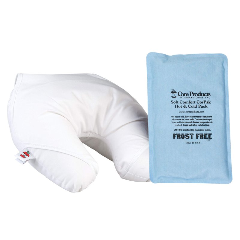 This pillow combines rest and cold therapy to help relieve migraines and tension headaches. Also helps pinched nerves, stiffness or sprains. Cold pack is removable for easy storage in freezer. Includes a Soft Comfort CorPak.