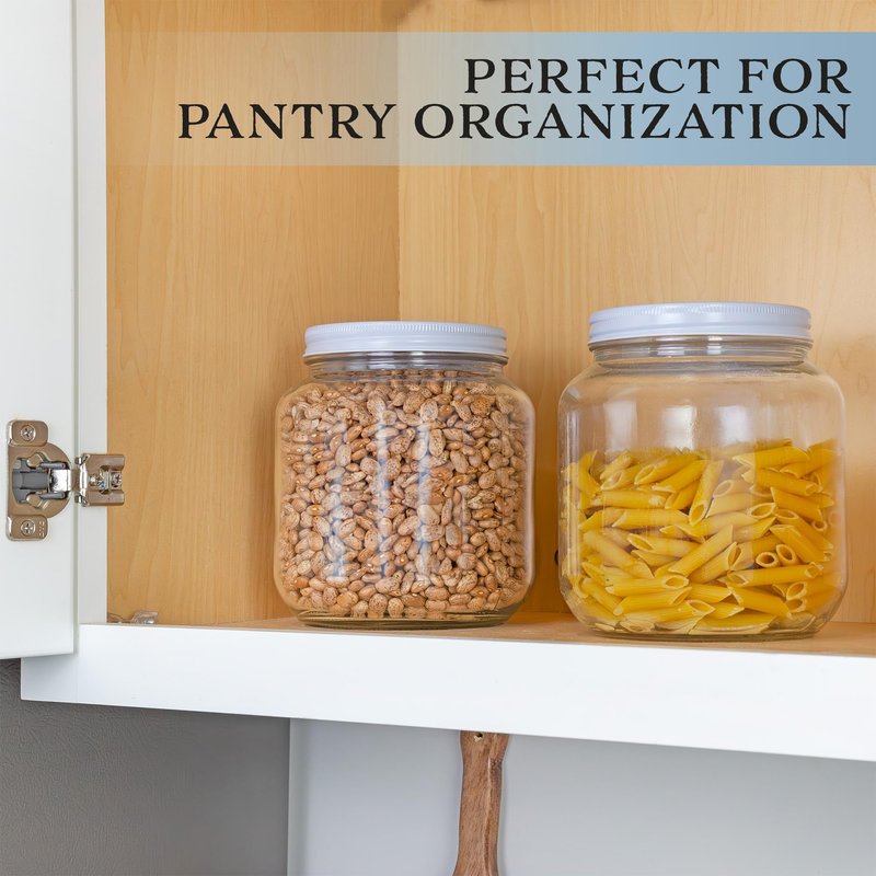 - 64-OUNCE GLASS JAR WITH LID - Receive one durable, thick walled 2 quart jar with white metal lid.