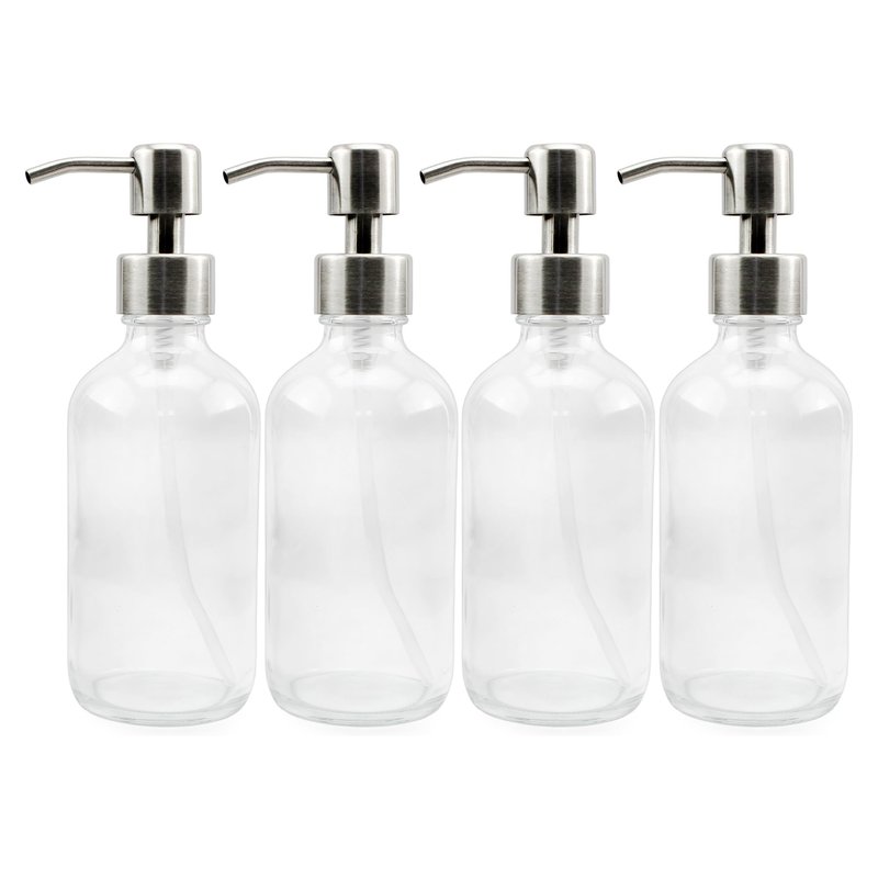 - VALUE 4-PACK: You get four 8-ounce clear glass bottles & 4 stainless steel pump tops
