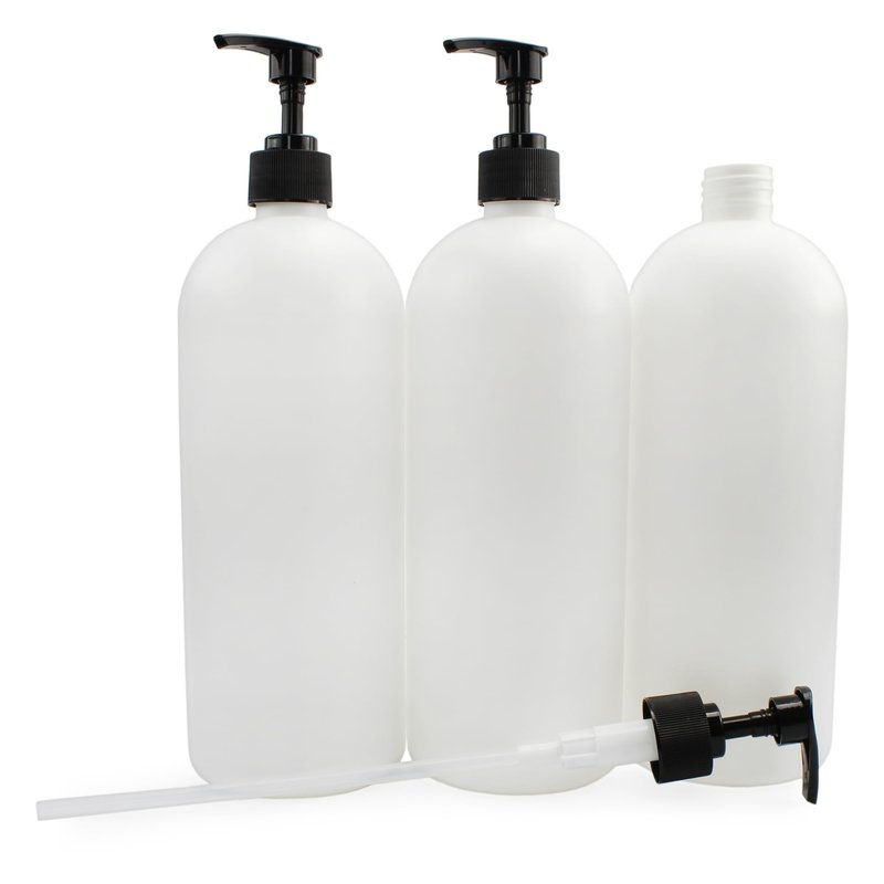 Now there’s a classier way to store your liquid shower supplies. With this set of 3 white pump bottles, you can buy your shampoo, conditioner, lotion, or body wash in bulk saving shopping time and money. These bottles are made from #2 HDPE plastic and the pump tops are made from #2 PP plastic, so all 3 pump bottles are totally BPA-free. They also help reduce waste by utilizing the pump top. No more pouring too much product and trying to figure out how to get it back in the bottle! With a 32 oz capacity, you’ll spend more time relaxing in the shower and less time refilling these stylish bottles. In addition, this type of plastic is very sturdy and is the preferred plastic for hygiene use.