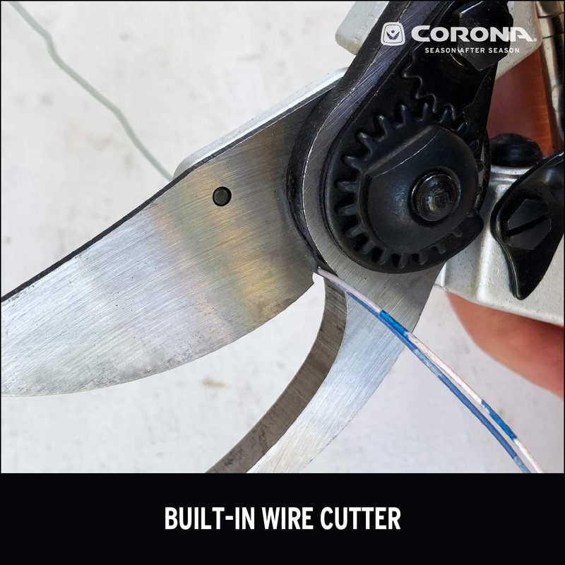 - BUILT-IN WIRE CUTTER and sap groove to prevent the blades from sticking
