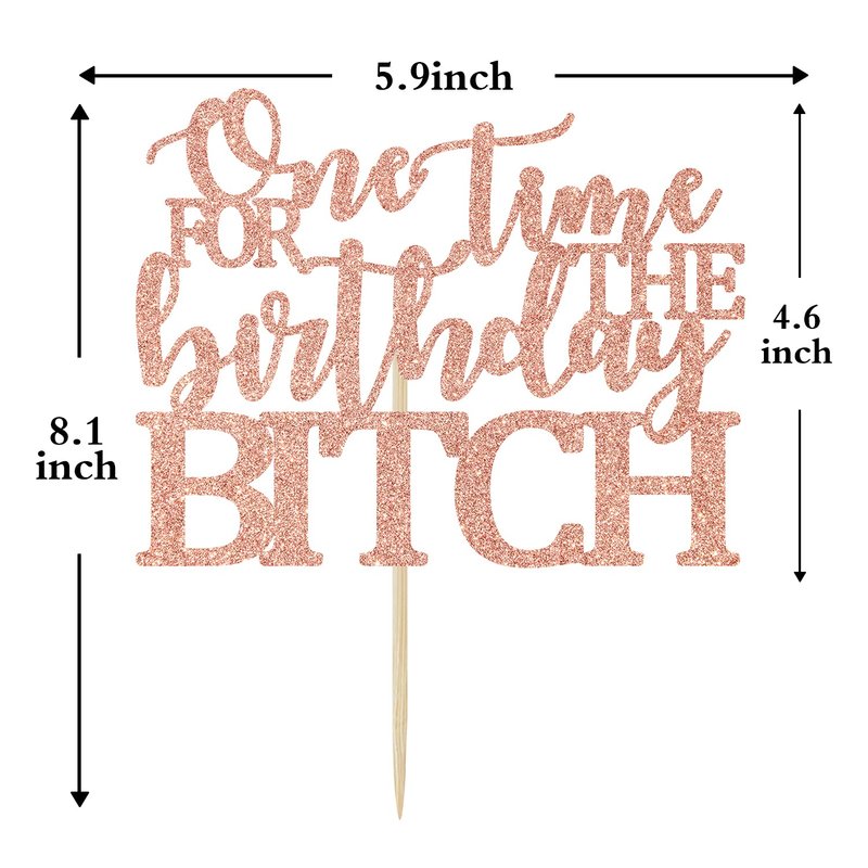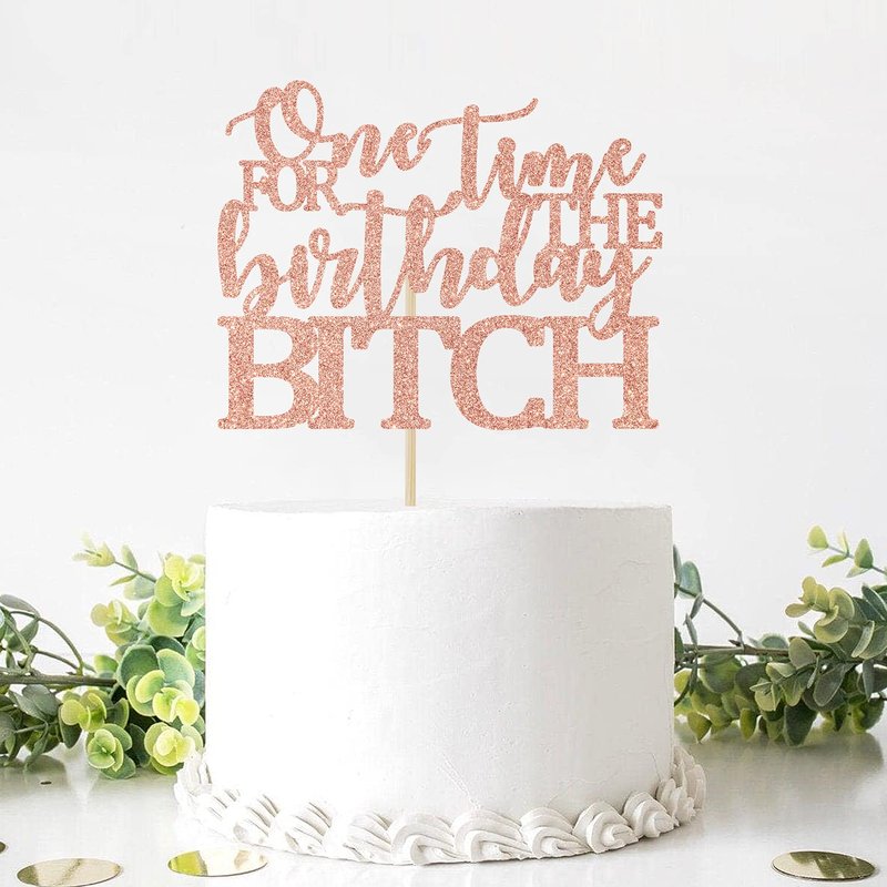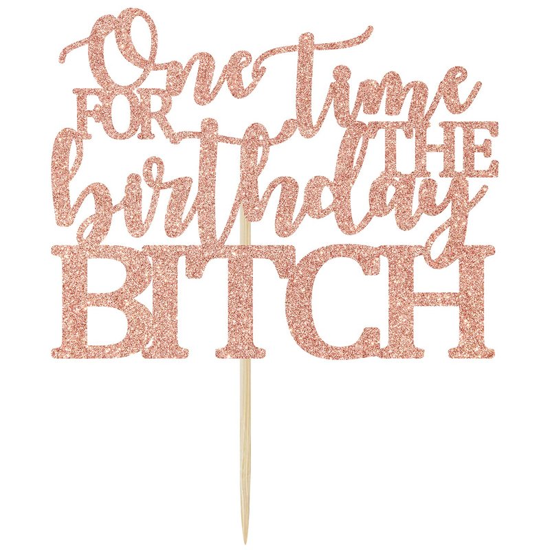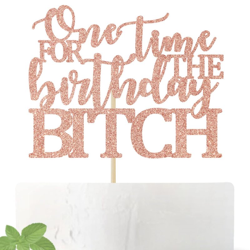 Cos mos One Time for The Birthday Bitch Cake Topper, Funny Birthday Cake Decoration for Her, Bachelorette / Anniversary / Birthday Party Supplies(Rose Gold)