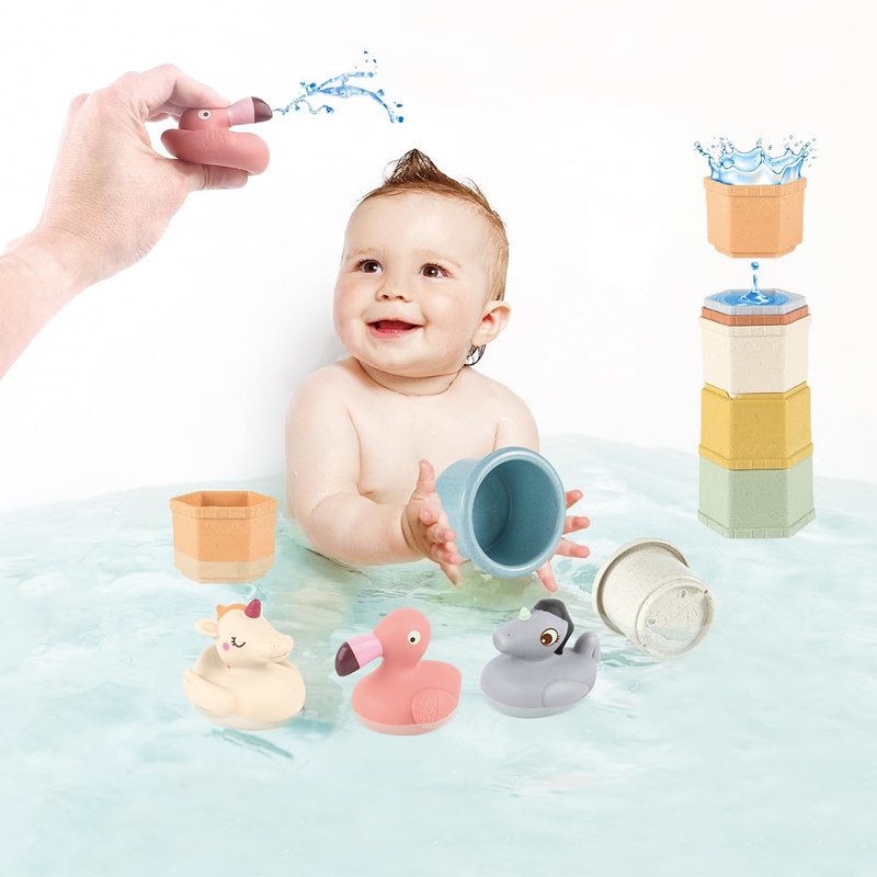 - Infant|Toddler|Baby Bath Toys: This toy set also comes with 3packs floating animal toys for a happy bathing time. Every baby loves bath and enjoys a bathtub fun