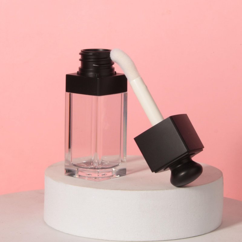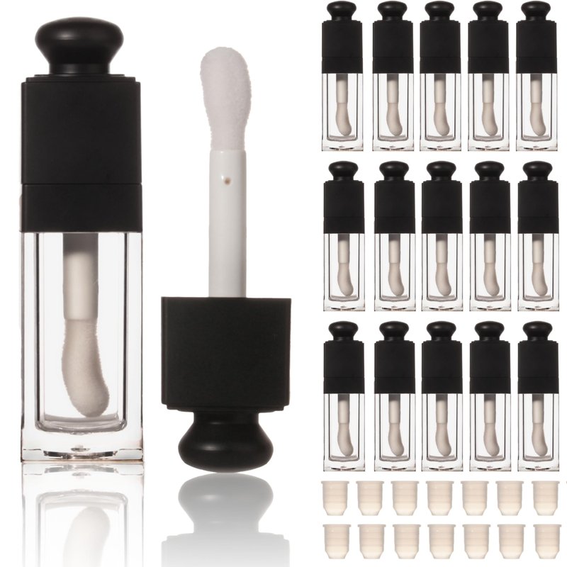 COSIDEA 18PCS Empty 8ML Square clear Lip Gloss Tube Black big doe foot wand lipgloss tubes for Lip oil tint bottles container