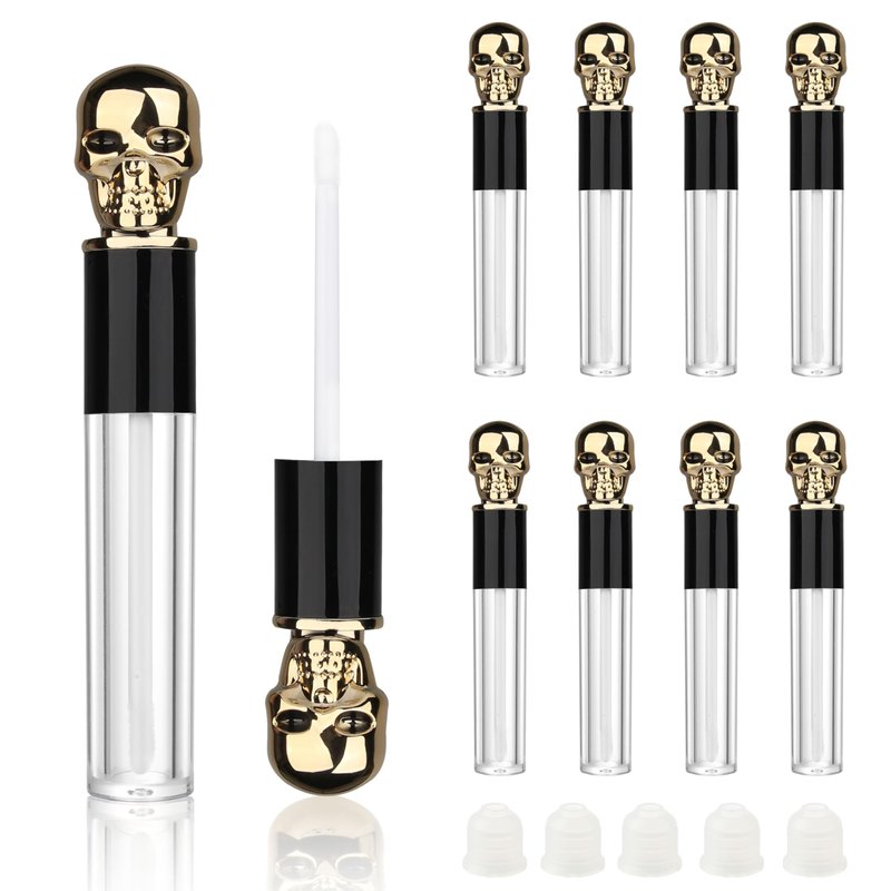 COSIDEA 8pcs Empty Round 5ml 0.17oz skull lip gloss tubes with wand Gold fancy Lipgloss tube containers for lip oil packing