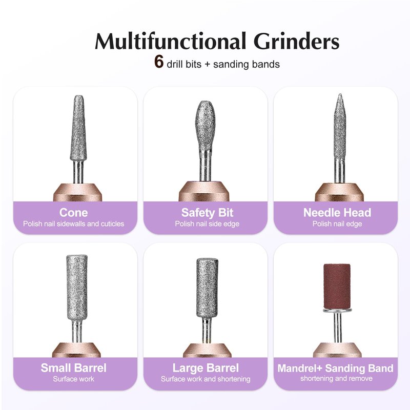 Looking for the ideal item for your nail-loving friends? Look no further. This all-in-one nail kit includes six different nail drill bits and sanding bands to cater to various needs. Whether it's for birthdays, Valentine's Day, Christmas, or Thanksgiving Day, this nail drill kit is the ideal item to delight any nail enthusiast.