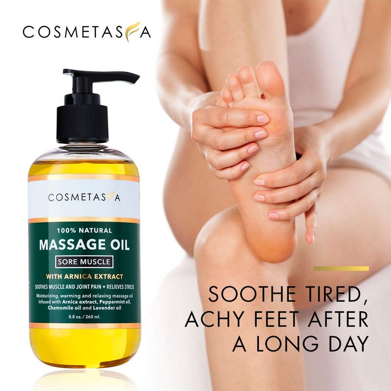 - SOOTHING MUSCLE AND JOINT PAIN RELIEF- Cosmetasa’s Sore Muscle Massage Oil includes Arnica extract, Chamomile oil and Wild Mint Leaf Oil which greatly assist in relieving muscle and joint pain and help soothe and dissolve tension in sore, tired and achy muscles.