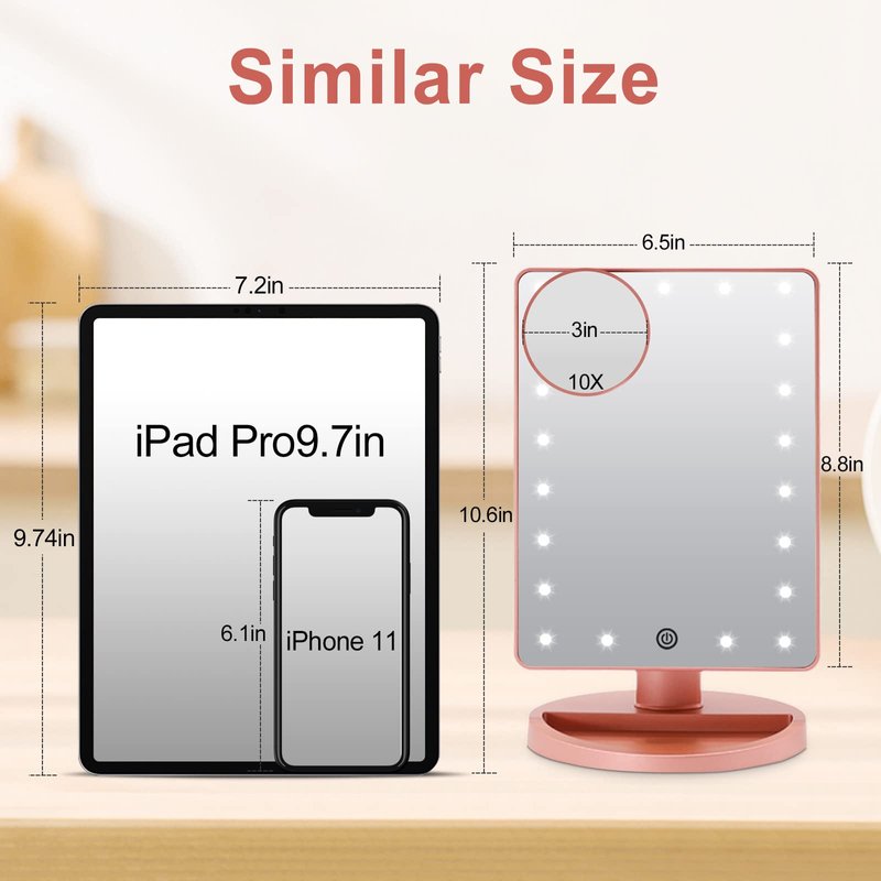- 【21pcs Bright LED Lights】COSMIRROR lighted makeup mirror is built-in 21 pieces bright adjustable Leds, allow you makeup in various lighting situations like daytime, evening, home and office environments, bright but not dazzling, protecting your eyes.