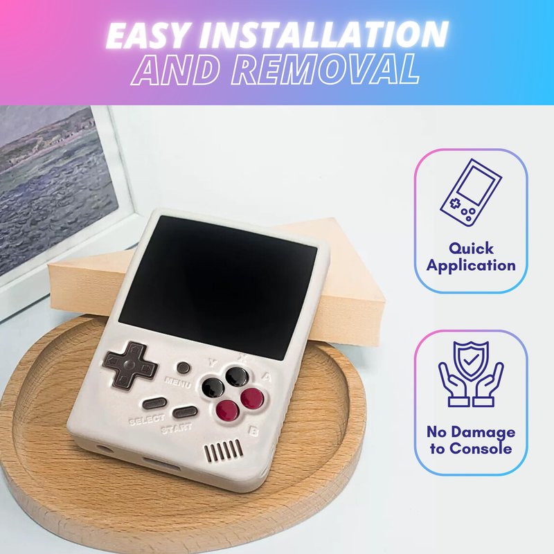 Protect your handheld gaming device with this sleek and durable silicone case. Crafted from high-quality silicone material, it provides a snug fit and reliable protection against scratches, bumps, and daily wear and tear. The case's precise cutouts allow full access to all buttons, ports, and features, ensuring an uncompromised gaming experience. Lightweight and easy to grip, this case enhances your device's portability without adding bulk. Slip it on and enjoy your favorite retro games with peace of mind, knowing your device is shielded from potential damage. Designed for a specific handheld model.