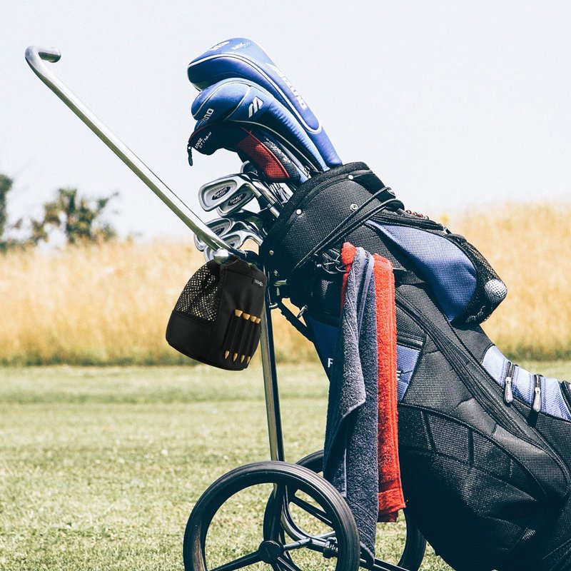 - Unique designed with golf tees storage, which support to 4 pcs golf tees, convenient to take and use. And designed with drawstring cord lock on the top of bag, which can protect the balls from spilling out.