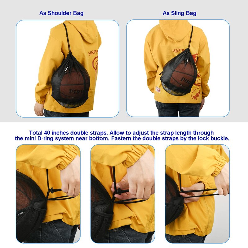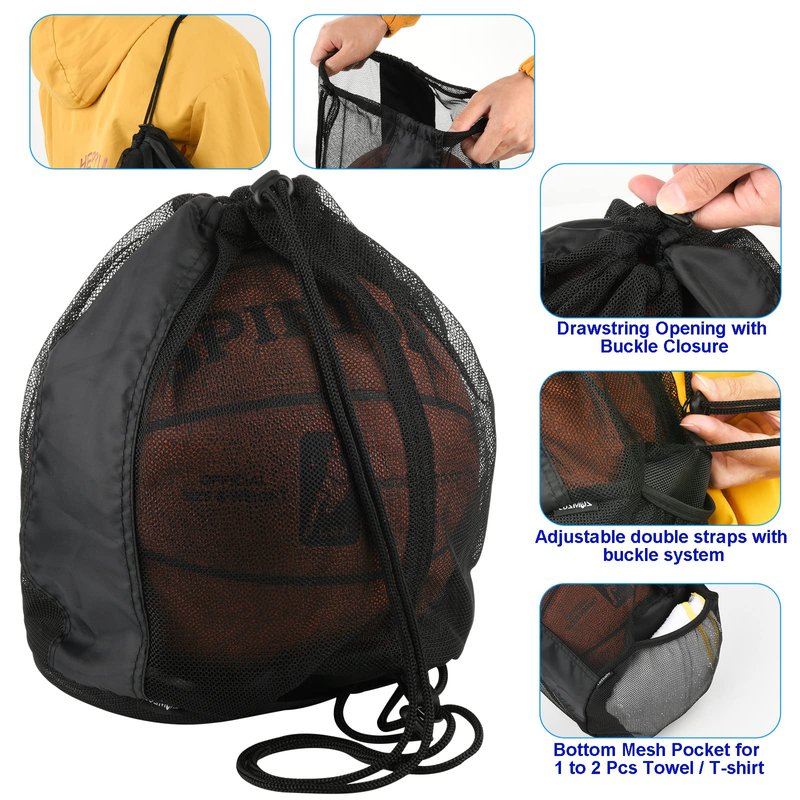 - SINGLE BALL CARRY BAG: Breathable drawstring mesh bag, sackpack / sling back bag for carrying Basketball Volleyball Rugby Ball Soccer Football. Multi storage usage that carrying your accessories for different sport games.