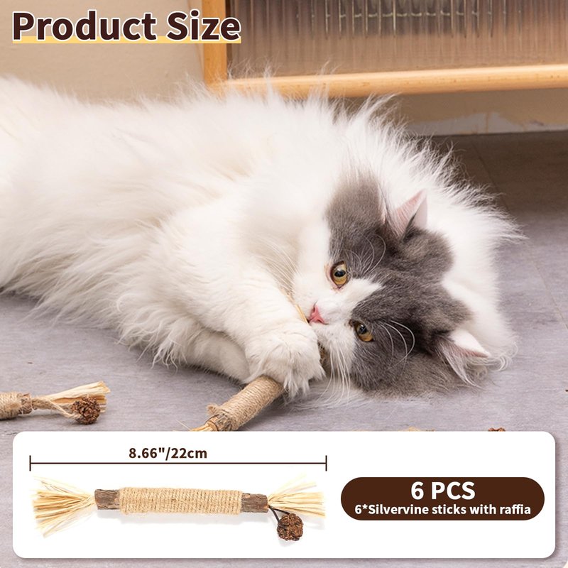 • 6-Pack Silvervine Toys: A great choice for households with multiple cats. If one gets lost, there are still other toys to keep your cats entertained and prevent boredom. Through playing and chewing, cats can release excess energy, reduce stress, and improve their mood.