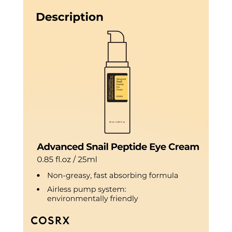 COSRX Snail Mucin Peptide Under Eye Cream, 0.84 fl oz, 73.7% Snail Mucin and Niacinamide, Eye Care, Eye Cream Anti Aging, Dark Circles, Korean Skin Care