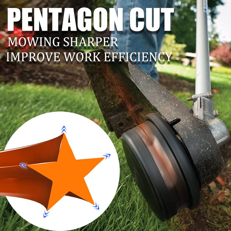 - Pentagon Cut: It is more effective than a regular round cut because the edge of the pentagon will be sharper, allowing you to cut through heavier weeds and thicker grass more quickly and efficiently, reducing cutting time.