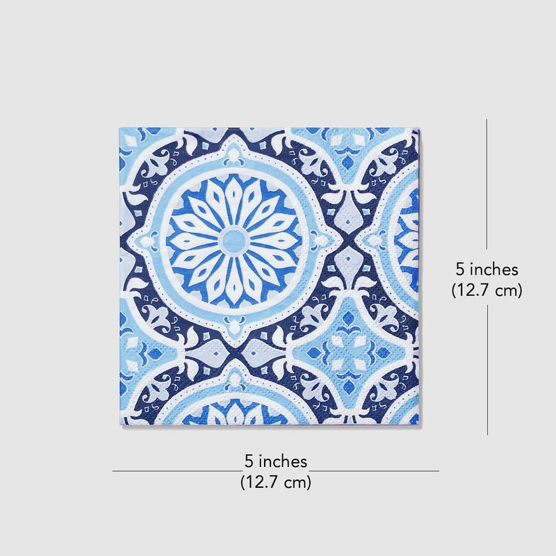 Coterie Blue Geometric Paper Cocktail Napkins (Set of 25) | Pretty Cocktail Napkins for For Bridal and Baby Shower, Engagement Party, Dinner Party, Birthday Party | 5” Fancy Paper Napkins