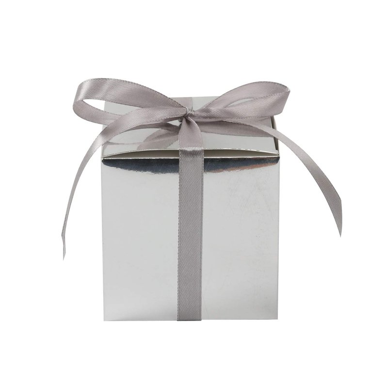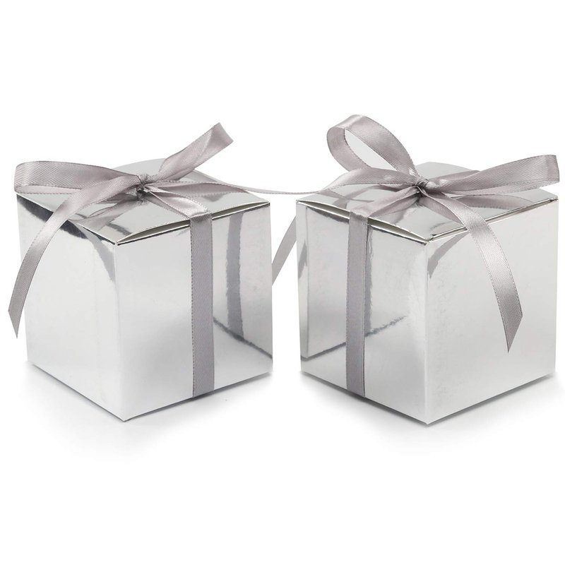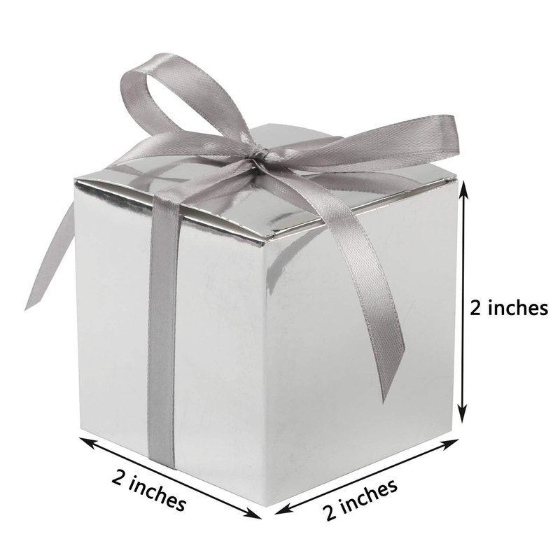 COTOPHER 100pcs Small Gift Boxes, Favor Boxes 2x2x2 inches Paper Gift Boxes with Ribbons Candy Box for Wedding Favors Baby Shower Bridal Shower Birthday Party (100 Metallic Silver)
