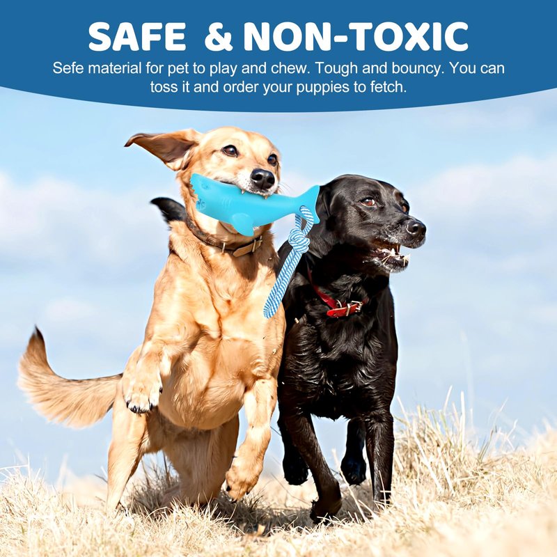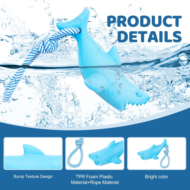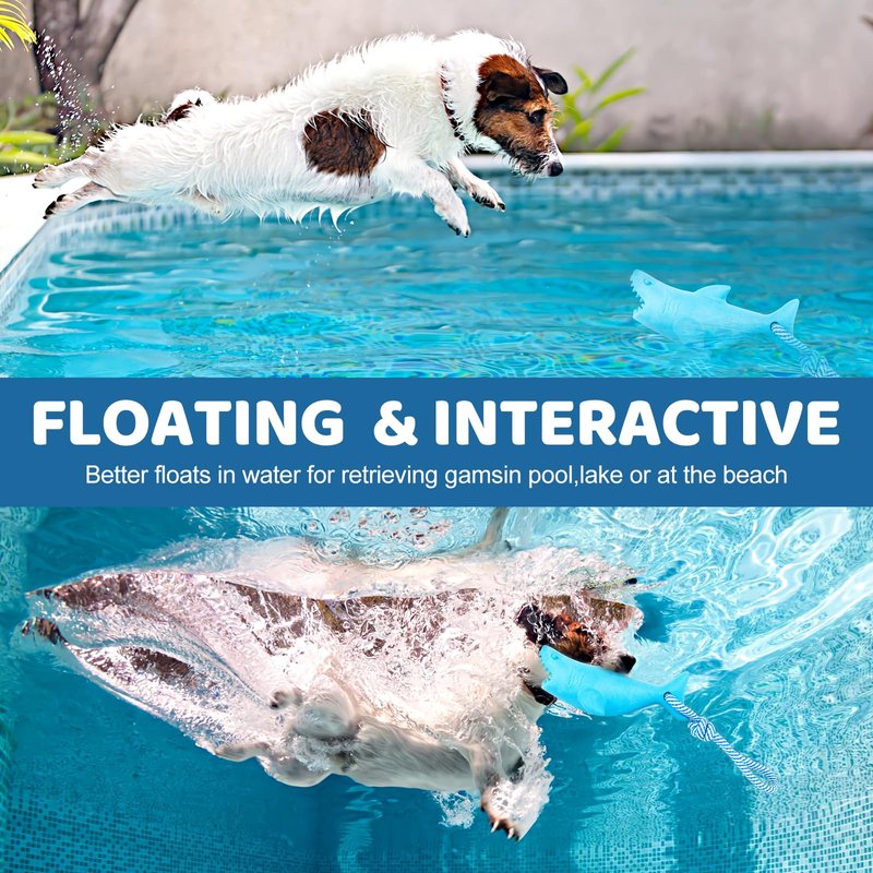 CoubonTail Dog Floating Toy, Dog Chew Toy for Aggressive Chewers, Pool Toy with Rope for Interactive Fetch & Play, Dog Beach Toy Set (Shark)