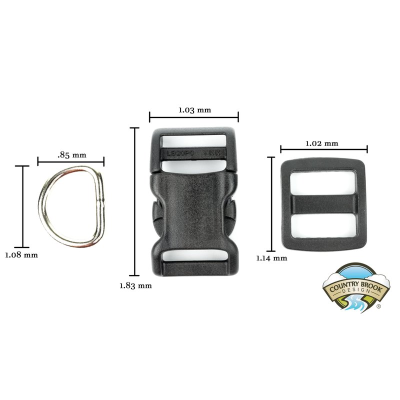 Country Brook Design Easy DIY Dog Collar Hardware Kit for (10) 3/4 Inch Collars with D-Rings, Triglides and Buckles