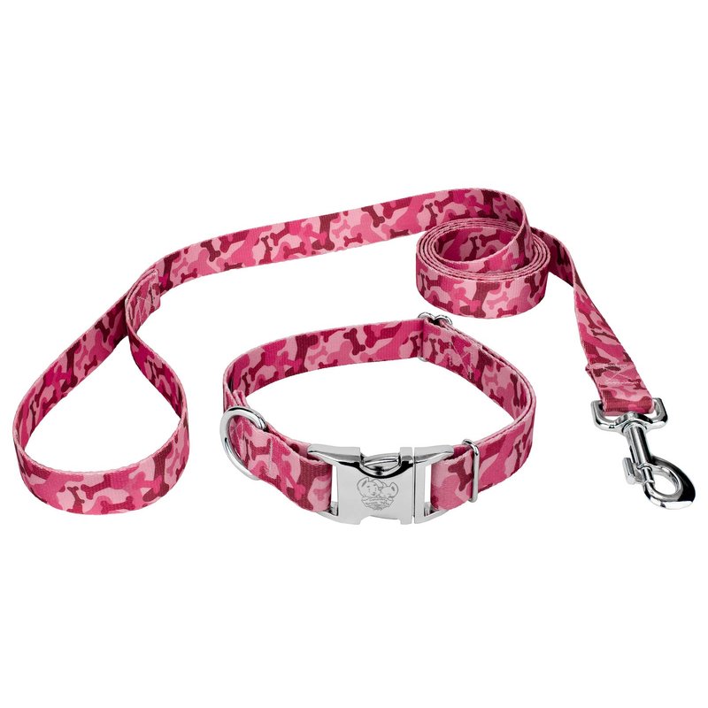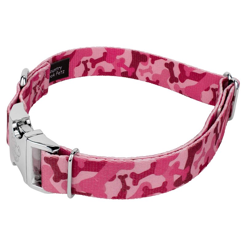 Country Brook Design® Pink Bone Camo Premium Dog Collar & Matching Leash Set - Military and Camo Collection with 16 Rugged Designs (1 Inch, Medium)