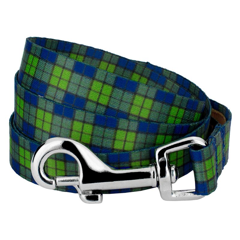 Country Brook Petz' Blue and Green Plaid Dog Leash is a fun take on the traditional plaid you already love. These bold and lively colors create a composition that is both classic and refreshing. Sharp lines with contrasting colors embody the standard design of plaid. These patterned leashes are uniquely designed, have a little luster to them, and are slick to the touch. Available in multiple widths and lengths, they give you the span to let your doggo feel a little bit of freedom. This beautiful leash pairs well with our Blue and Green Plaid collars, including training collars such as martingales. The silky smooth polyester loop slips over your hand, giving you a comfortable grip while walking your pet. Box stitching ensures strength for when your pup pulls against their leash. These leashes are washable, with mild detergent, and dry when laid out. The 1/2 Inch sizes are still reliable with a 256 lb. tensile strength, even though they may seem delicate. We know that you want the best for your pets, that’s why we make all of our products here in the United States. Walk your pup with confidence knowing that Country Brook Petz has you in mind when creating our products.