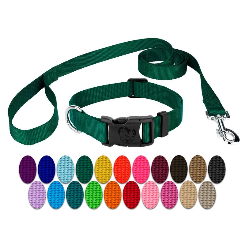 Country Brook Petz' Deluxe Nylon Collar and Leash are a safe, comfortable set made right here in the U.S.A. These collars are custom made using strong, industry leading YKK contoured side release buckles, providing extra safety for your dog. In addition, our nylon collars are made from rugged, durable nylon webbing. Available in a wide array of popular colors, these have strong, contoured YKK side-release buckles for your dog's comfort; wide-mouthed, heavy-duty triglides for easy adjustment; and heavy-welded D-rings for your dog's safety. The silky smooth nylon loop of the leash slips over your hand, giving you a comfortable grip while walking your pet. Box stitching ensures strength for when your pup pulls against their leash. Constructed with high grade snap hooks and nylon, this strength will ensure your puppy won’t break the leash. Our nylon is four times stronger than polypro leashes and will outlast them by many years. This set is washable, with mild detergent, and dries when laid out. We want your furbaby to be able to show the world their new collar immediately, so be sure to measure for the right size. You can check this out by using a string, or tape measure, to see where the collar will fit snugly and comfortably on your dog’s neck. These stylish colors work well with both boy and girl puppers.