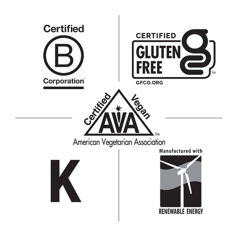 - Certified - Certified Gluten Free by GFCO, Certified Vegan by AVA