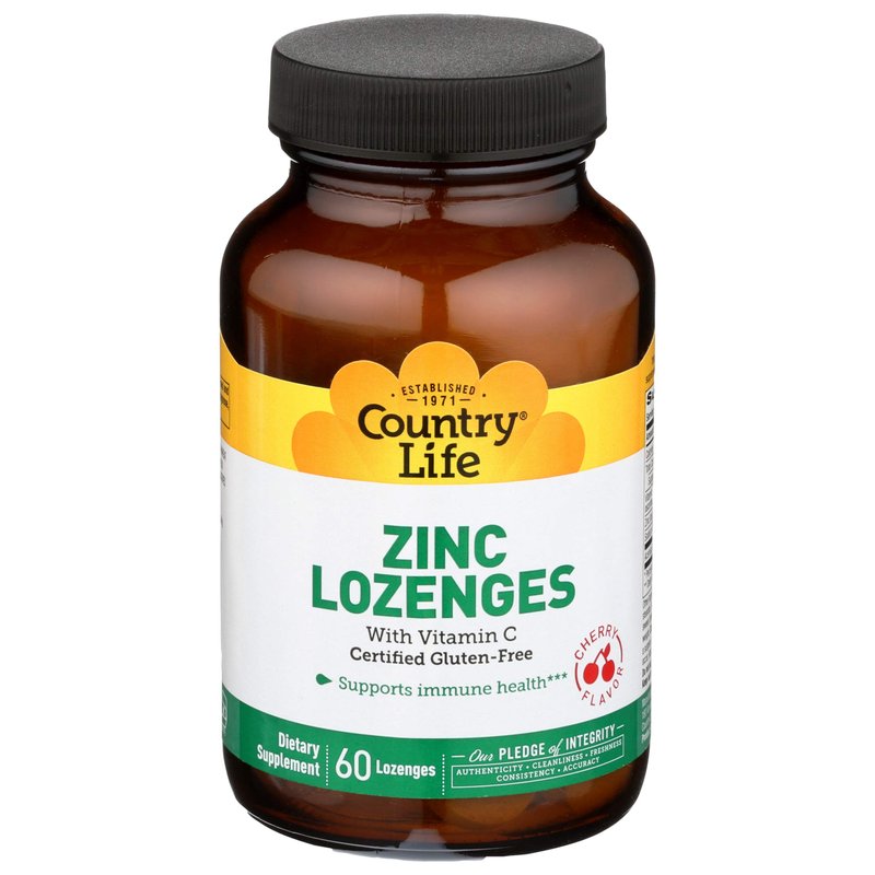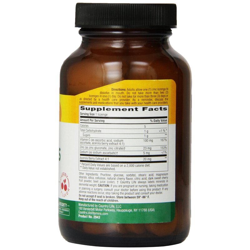 Country Life Zinc Lozenges 23 Mg + Vitamin C Cherry Flavor, 60-Count