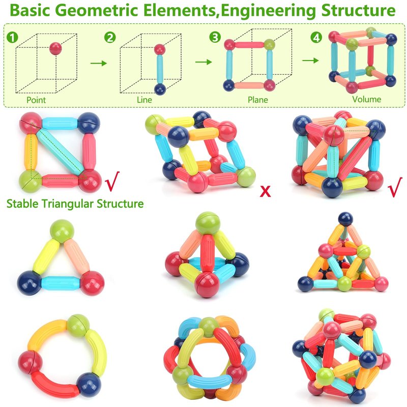 - 【Boosts Creativity and Skills】:This 74pcs magnetic stick and ball building set inspires kids aged 1-3 and 3+ to explore geometry, spatial awareness, and problem-solving. It fosters STEM learning and creativity by allowing them to build 2D and 3D models, enhancing fine motor skills and logical thinking.